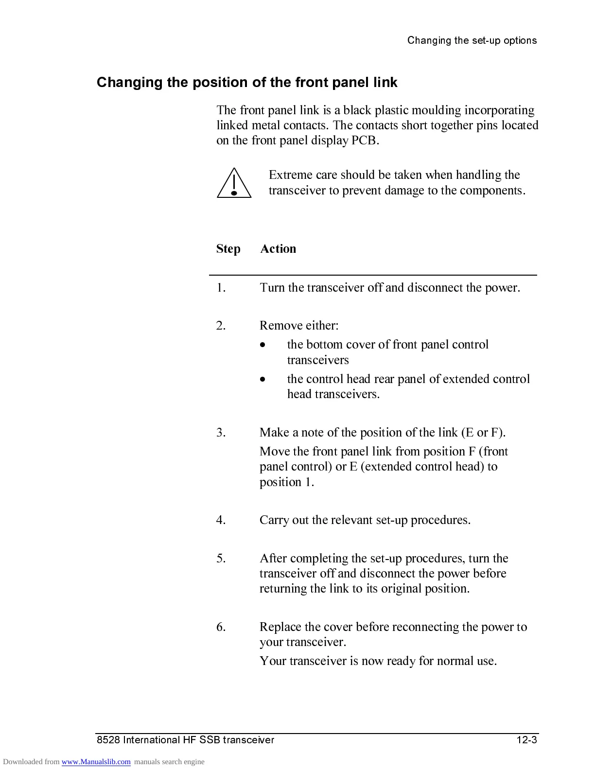 &KDQJLQJWKHSRVLWLRQRIWKHIURQWSDQHOOLQN