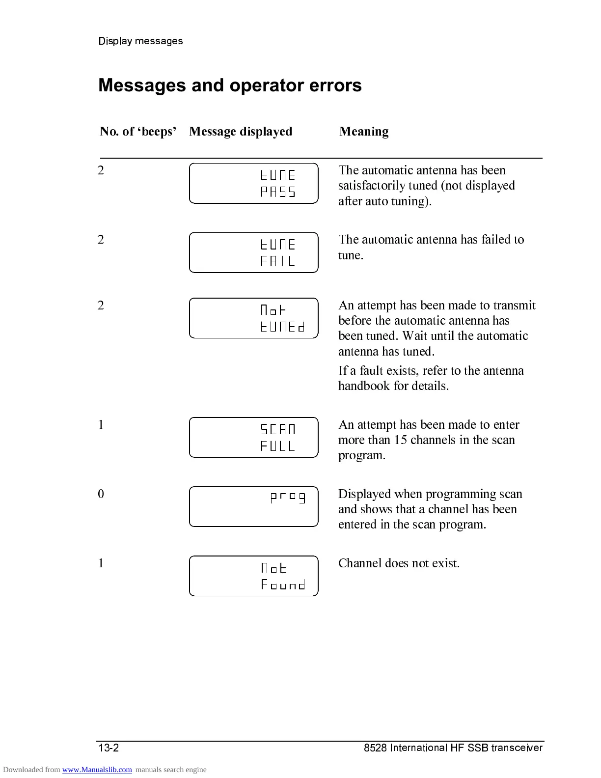 1RRI¨EHHSV© 0HVVDJHGLVSOD\HG 0HDQLQJ
