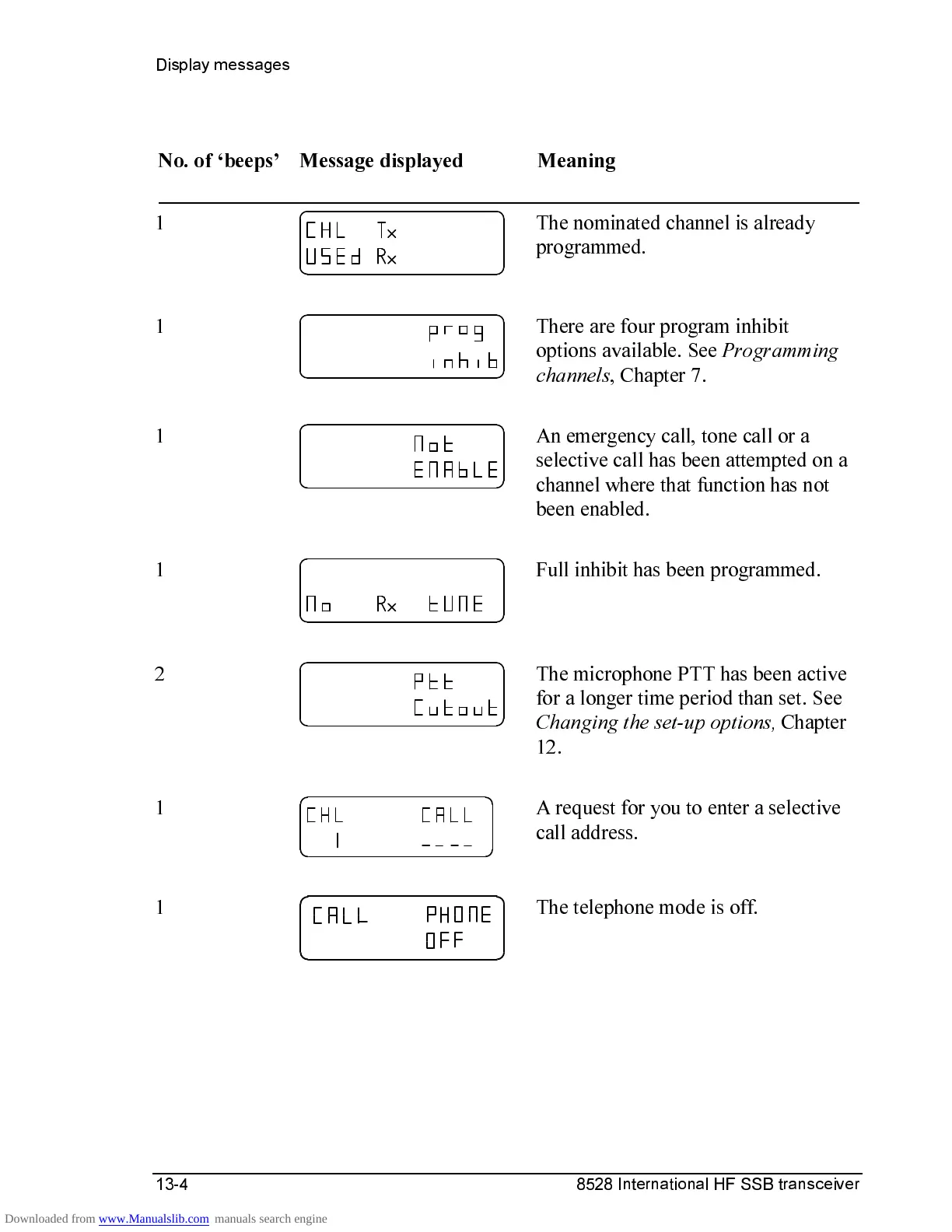 1RRI¨EHHSV© 0HVVDJHGLVSOD\HG 0HDQLQJ