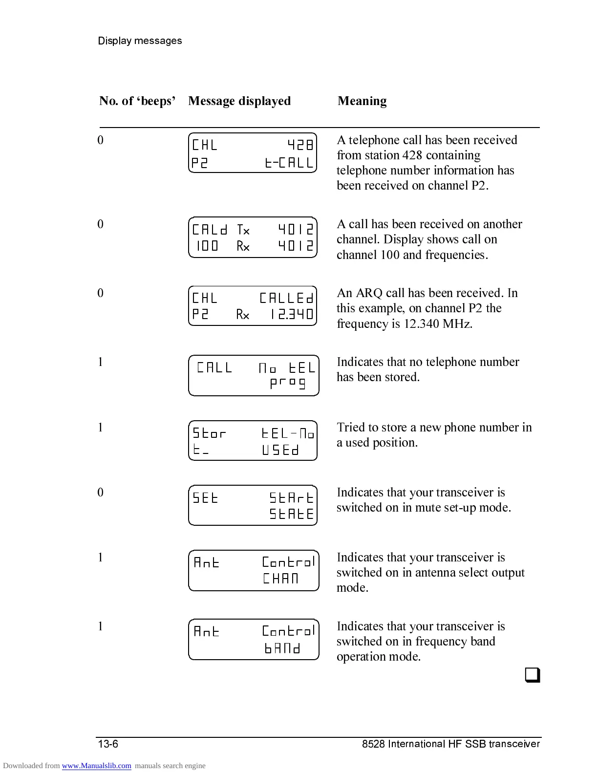 1RRI¨EHHSV© 0HVVDJHGLVSOD\HG 0HDQLQJ