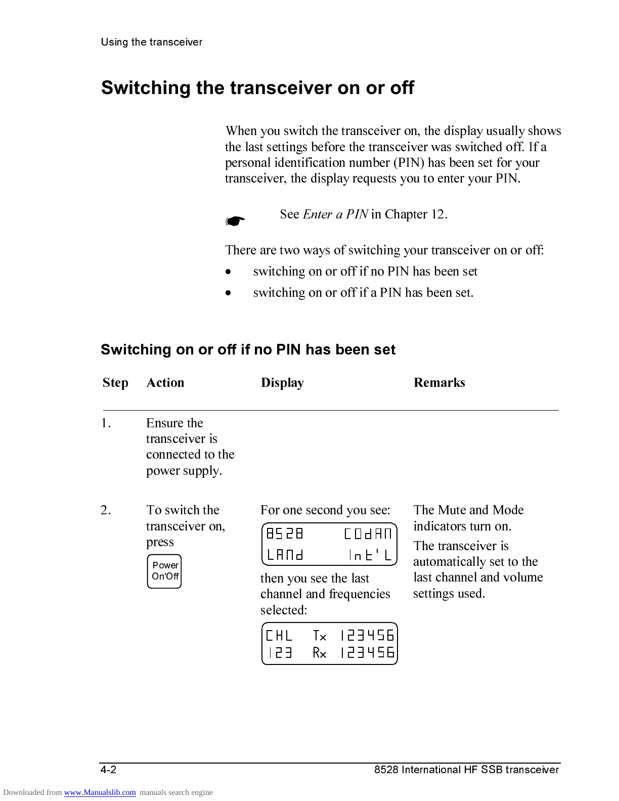 7KHUHDUHWZRZD\VRIVZLWFKLQJ\RXUWUDQVFHLYHURQRURII