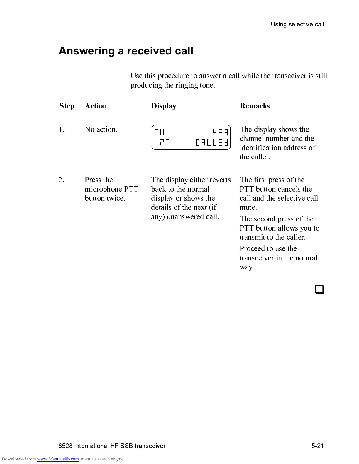 8VHWKLVSURFHGXUHWRDQVZHUDFDOOZKLOHWKHWUDQVFHLYHULVVWLOO