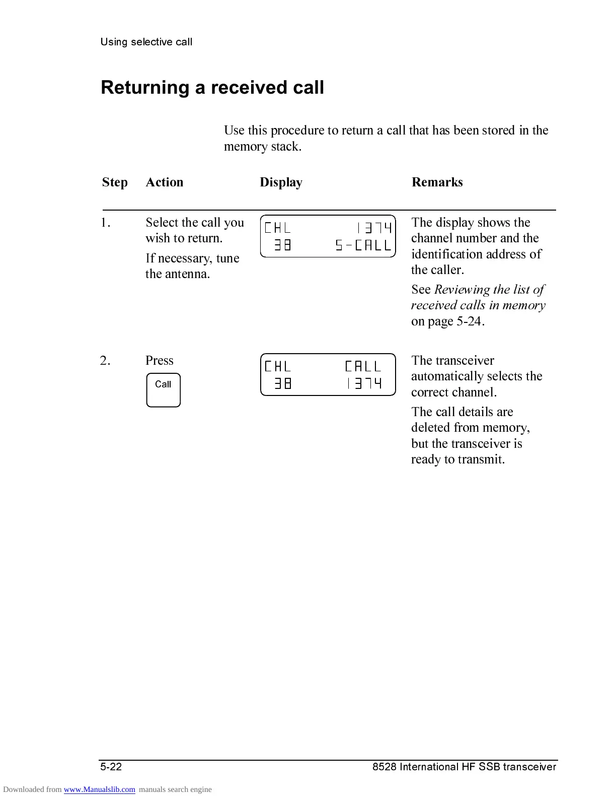 8VHWKLVSURFHGXUHWRUHWXUQDFDOOWKDWKDVEHHQVWRUHGLQWKH