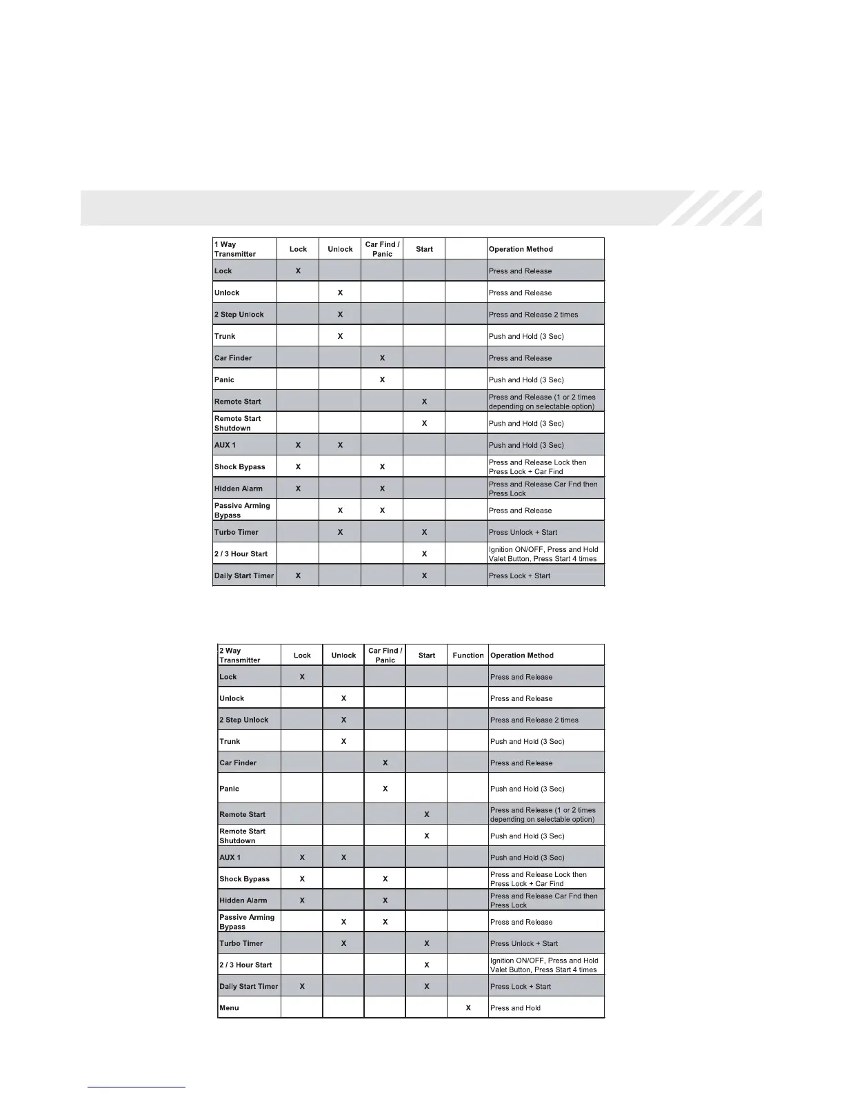 Transmitter Button Functions