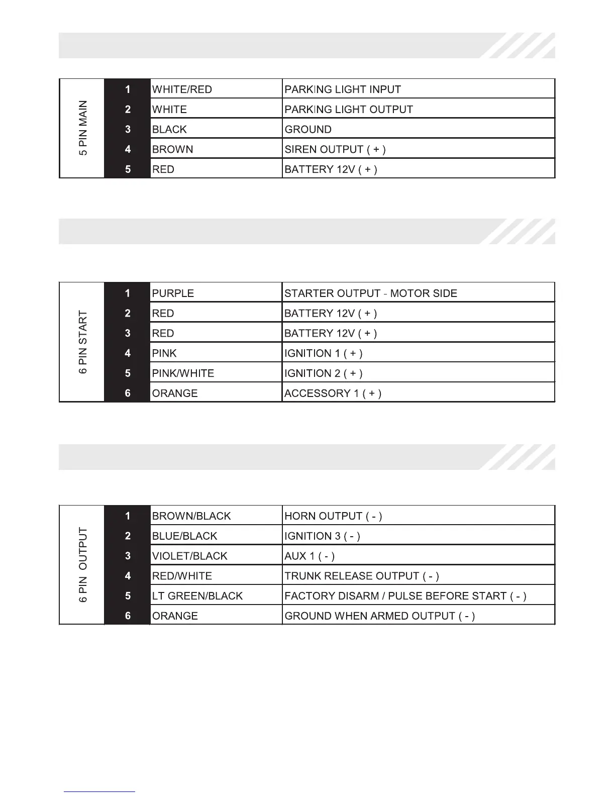 Code Alarm CA 6150 - Wire Connection Guide; Pin Start Harness