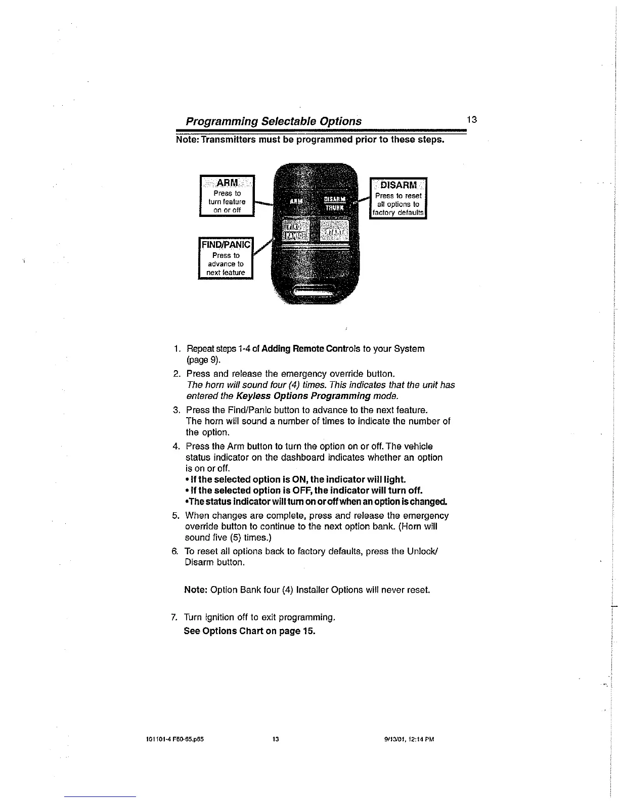 Key/ess Options Programming mode.