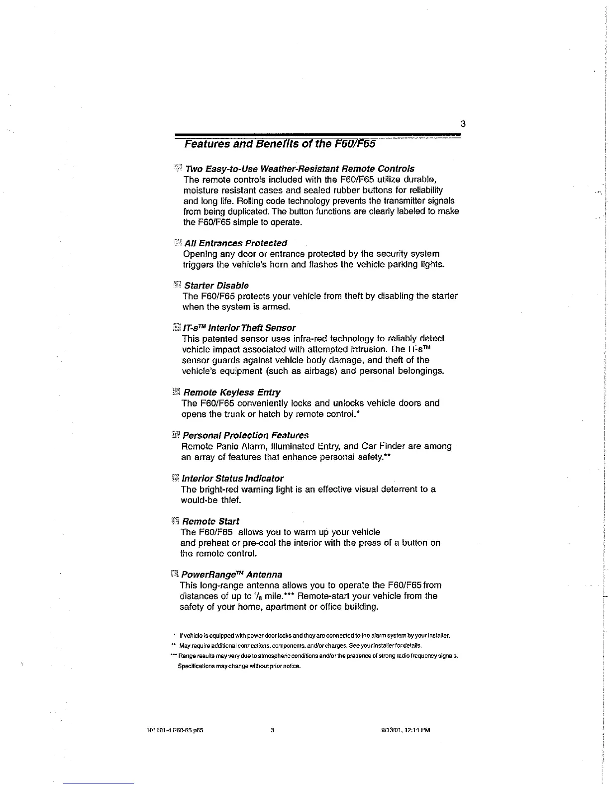 The F60/F65 protects your vehicle from theft by disabling the starter