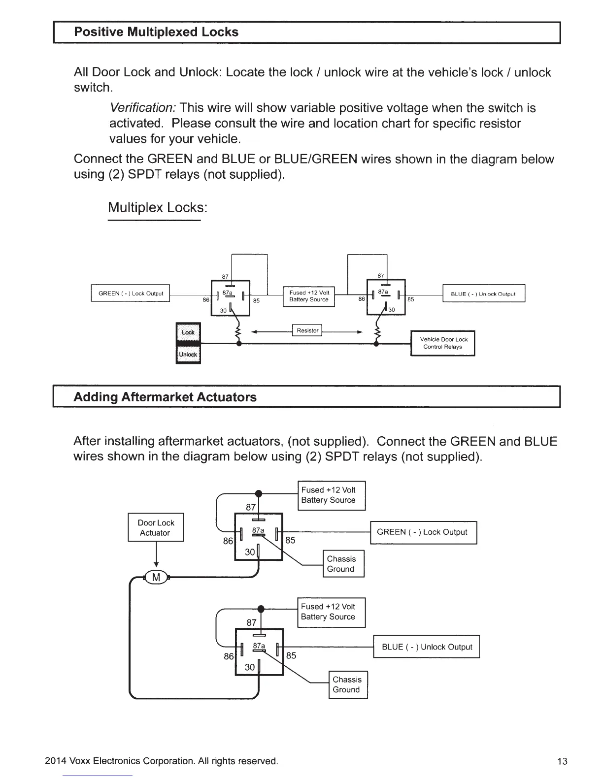 aftermarket actuators, (not supplied). Connect the GREEN and BLUE