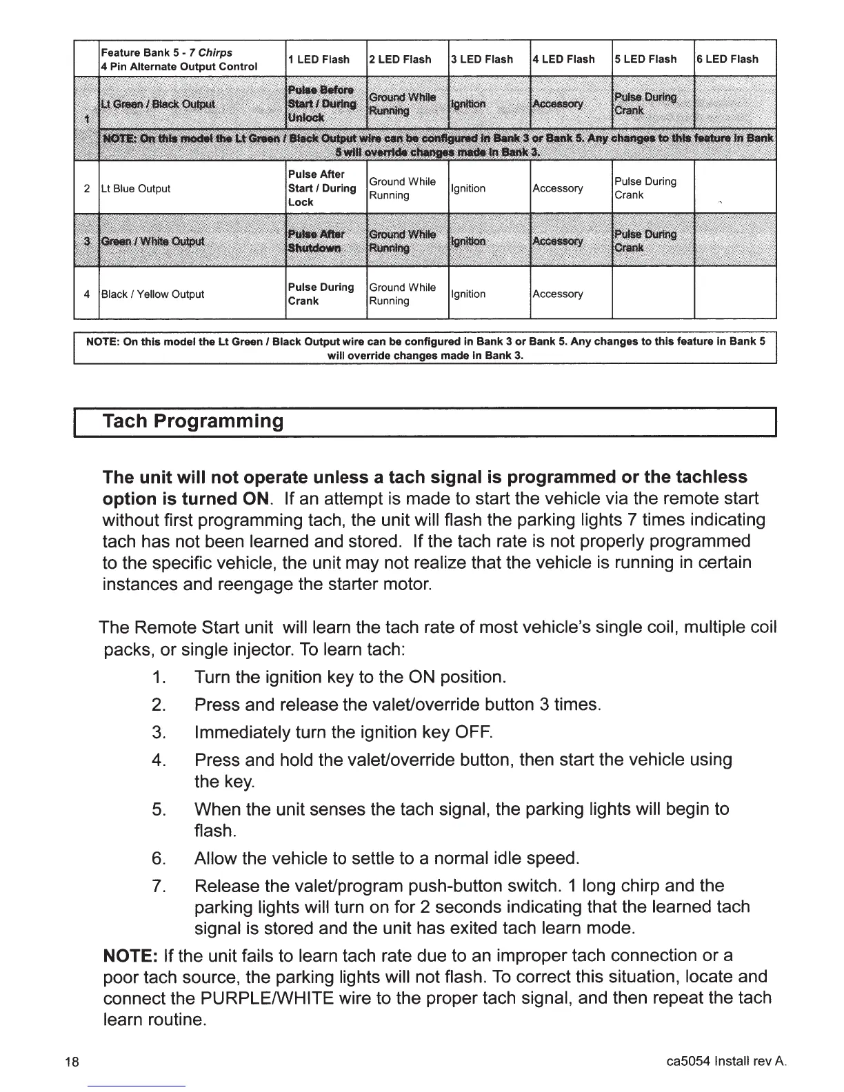 without first programming tach, the unit will flash the parking lights 7 times indicating
