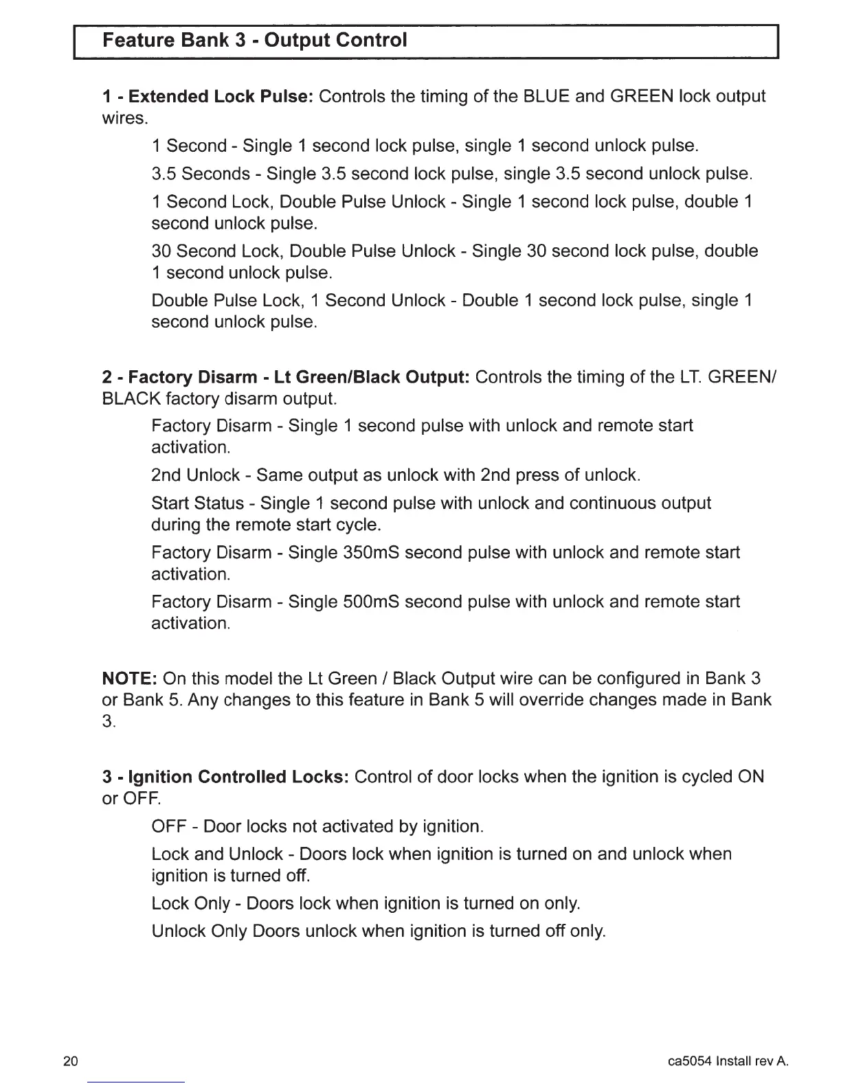 NOTE: On this model the Lt Green I Black Output wire can be configured in Bank 3