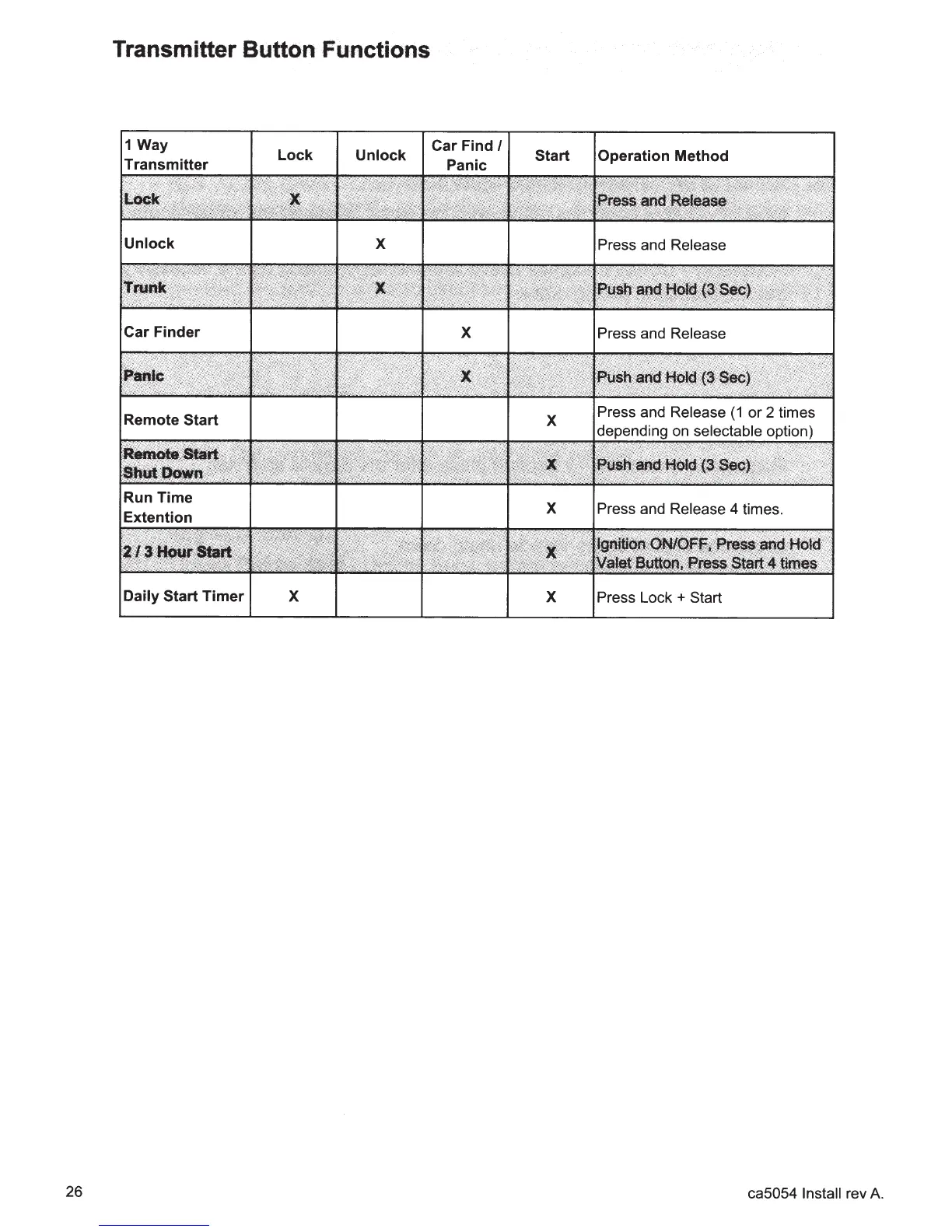 Code Alarm Professional ca5054 - Transmitter Functions and Diagnostics; Transmitter Button Functions