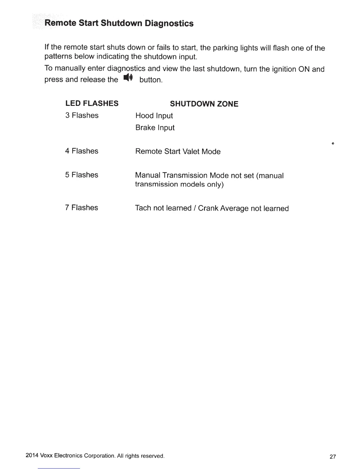 If the remote start shuts down or fails to start, the parking lights will flash one of the