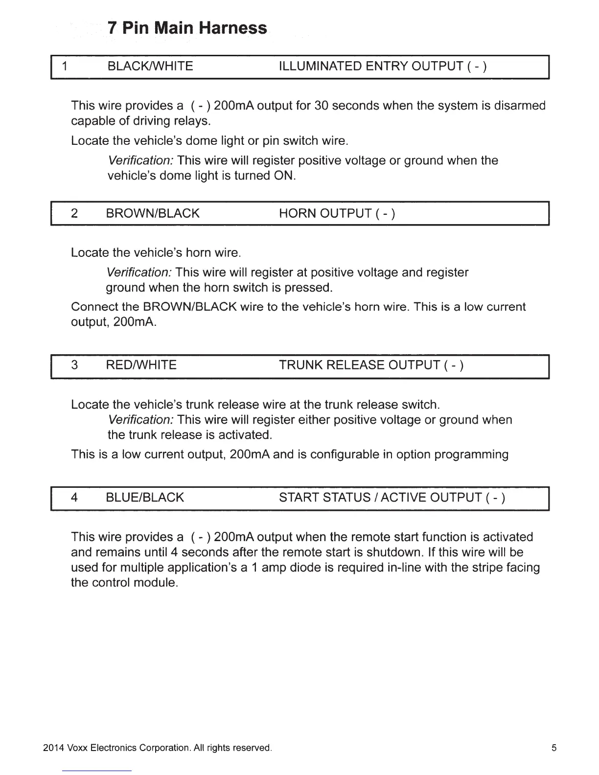 This wire provides a ( - ) 200mA output when the remote start function is activated