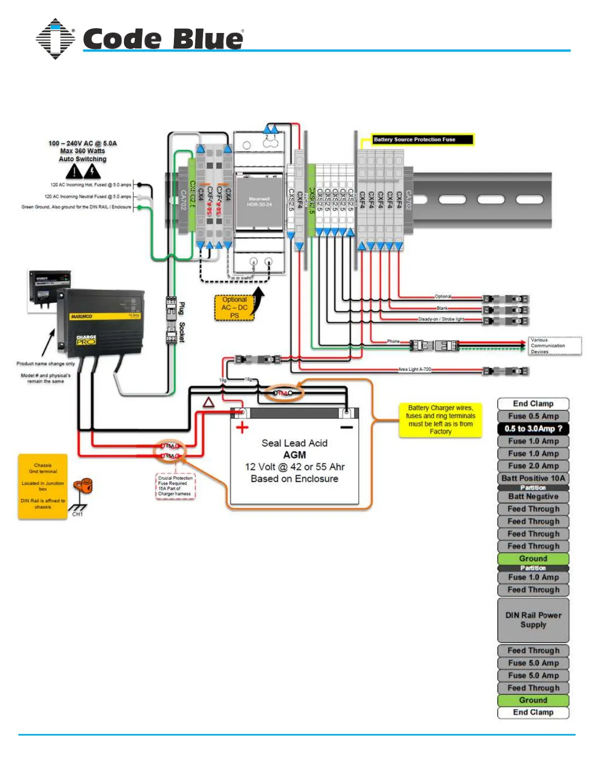 Code Blue CB 1-s - Nightcharge 120-240 V AC @ 5 Amps W; Area Light | 12 VDC; Amps