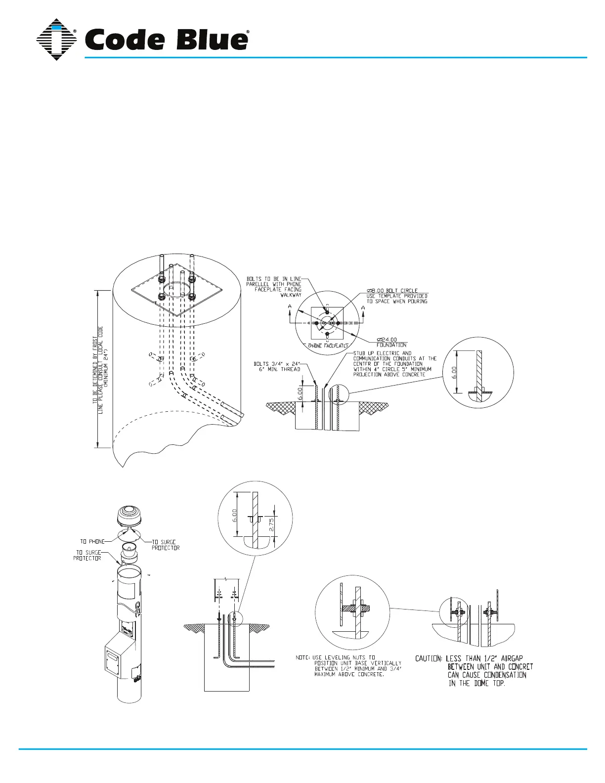 Code Blue CB 1 Series - Wiring for CB 1-s with AED Housing; Ground Wire Connection; 24 V AC Supply Connection; 120 V AC Supply Connection