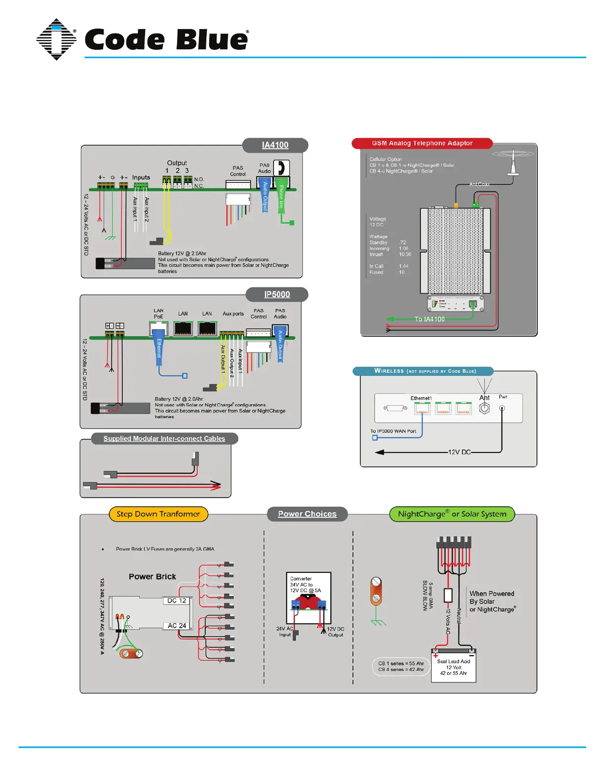Code Blue CB 1 Series - GSM Wireless Wiring Diagram; IA4100 Module Wiring; IP5000 Module Wiring; Modular Inter-connect Cables