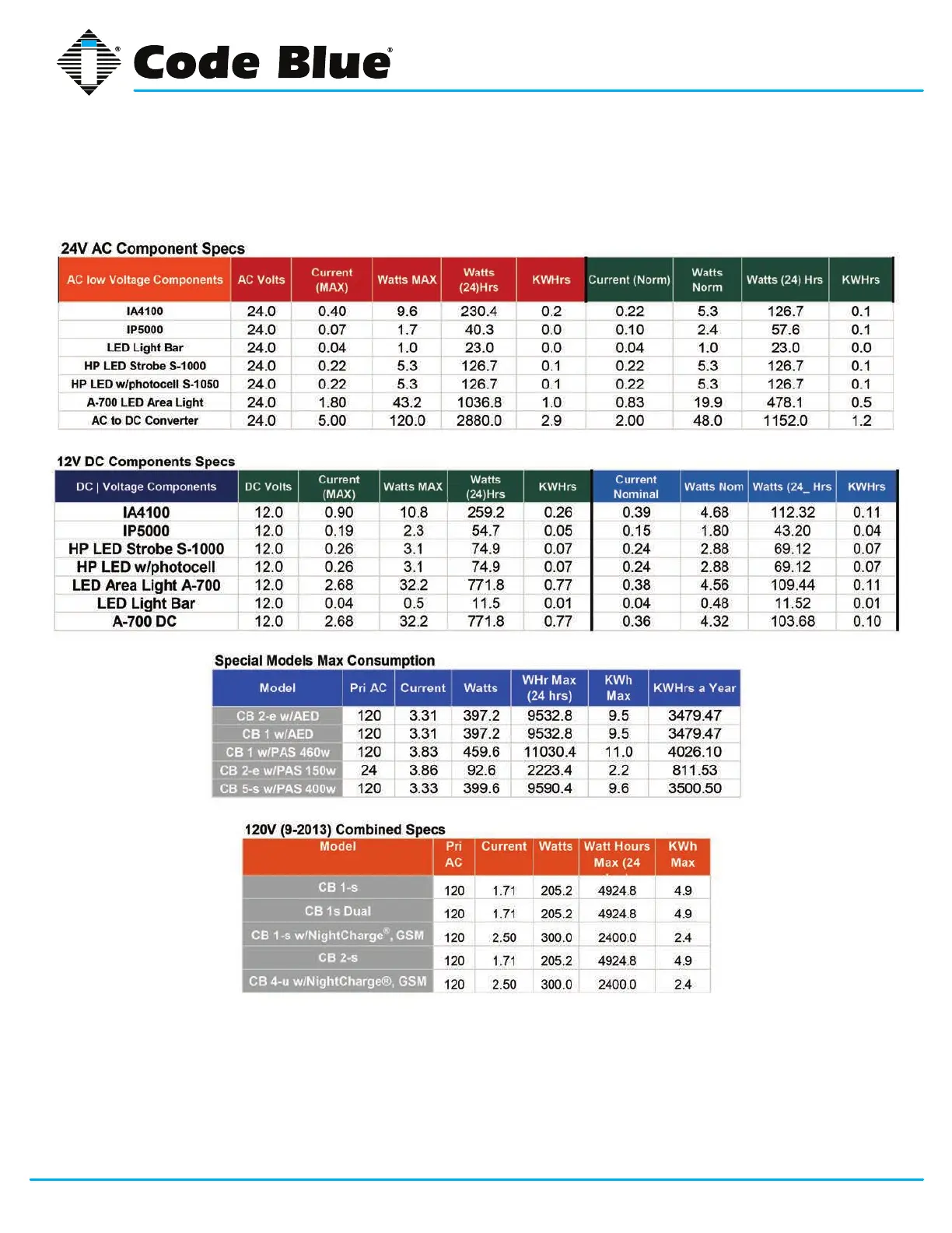(The following power requirements include the 2 Series and also ALL OTHER Code Blue units.)