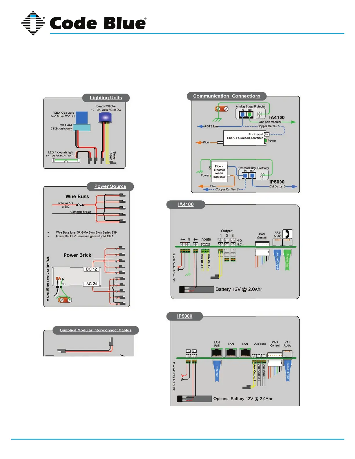 Code Blue CB 2-e - CB 2 Series Multi-Tap Power Brick Wiring; Power Source Wiring; Communication Connections Wiring