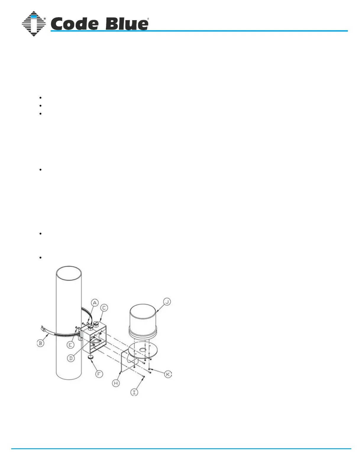 Using the three M4 X 8 screws enclosed (K), fasten the strobe (J) to the round portion of the