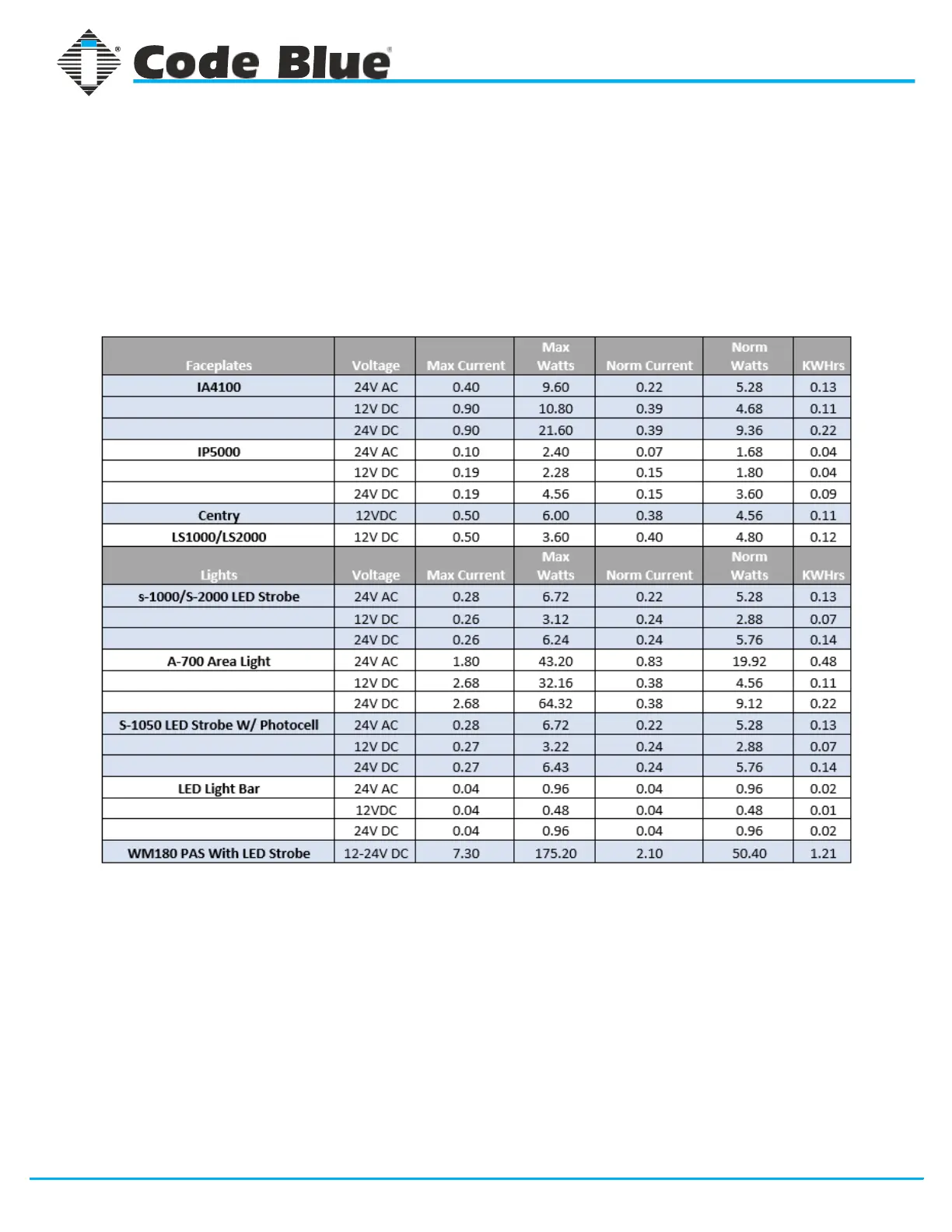 Code Blue CB 2 Series - Power Requirements