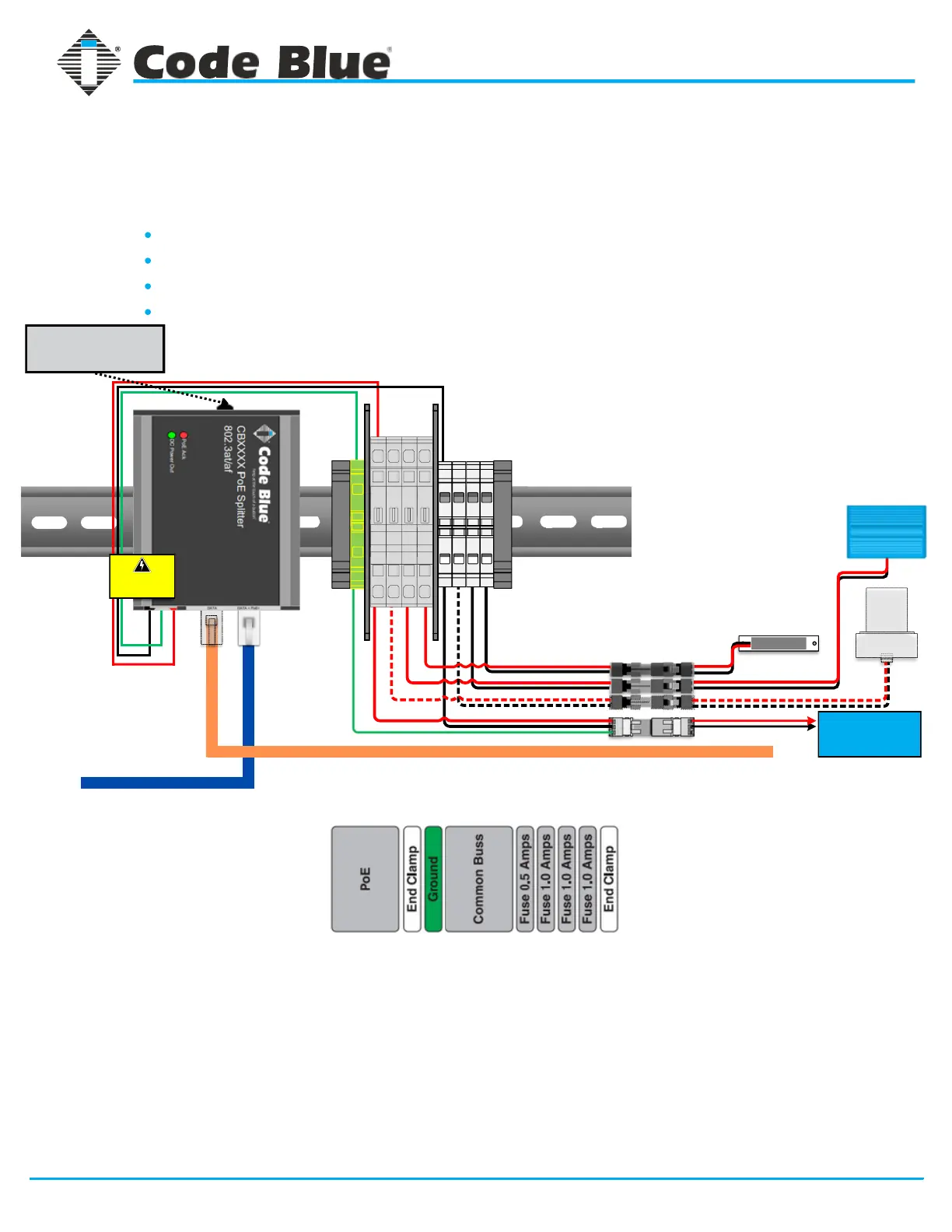 CB 2-a & CB 2-e PoE Standard DIN Rail Wiring