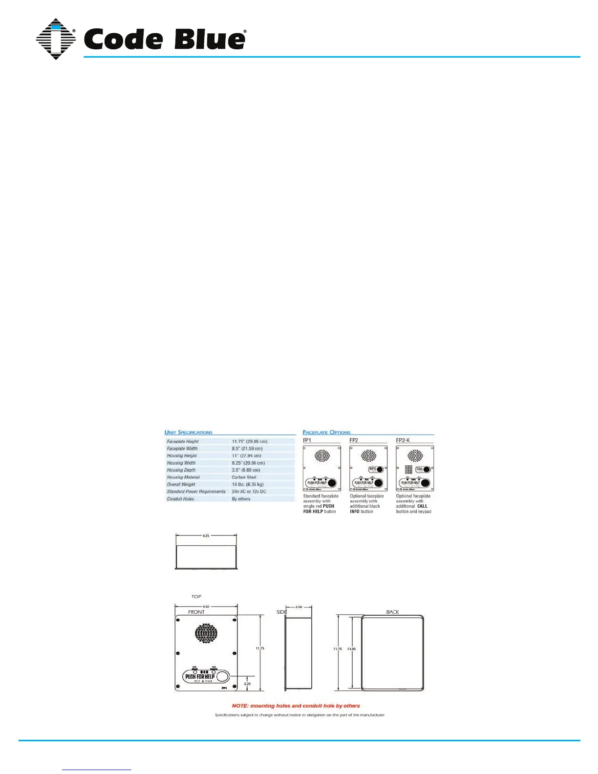 back plate. Mounting holes in the back, bottom or side of unit to be administered by the installer.