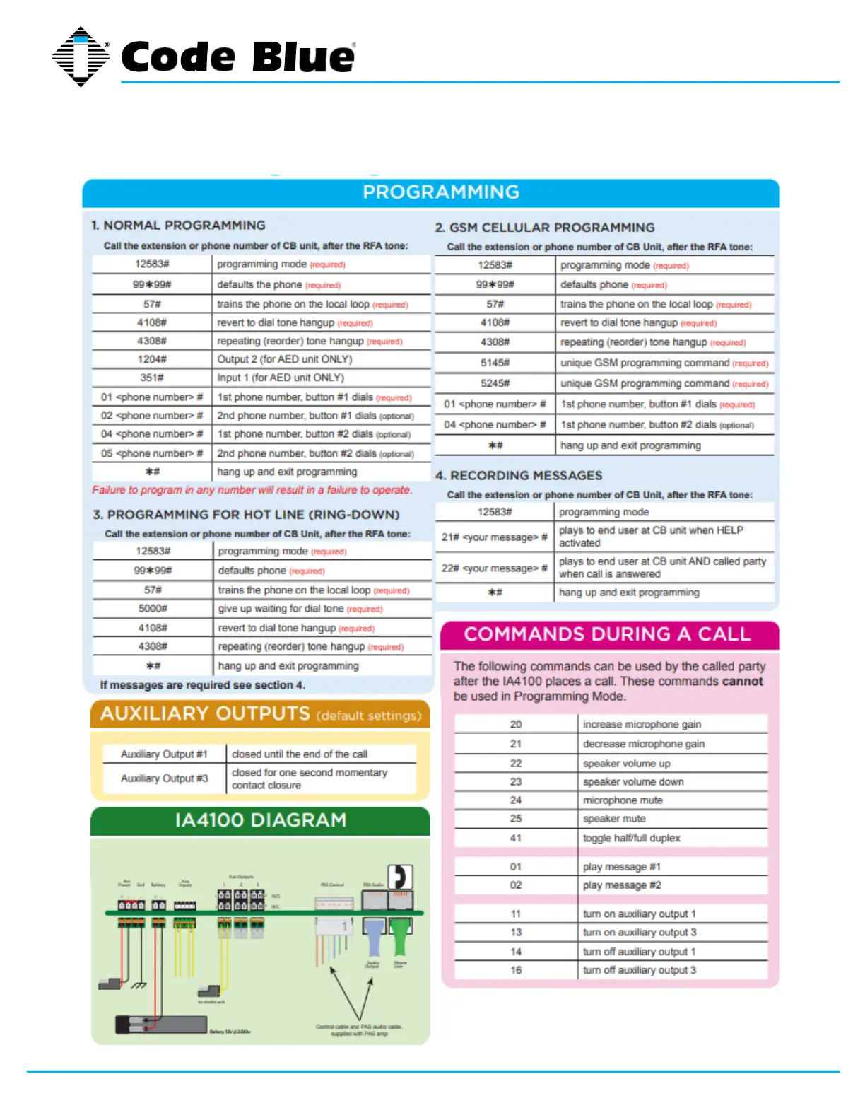 Code Blue IA4100 - 15 Basic Programming; Normal Programming; GSM Cellular Programming; Programming for Hot Line (Ring-Down)