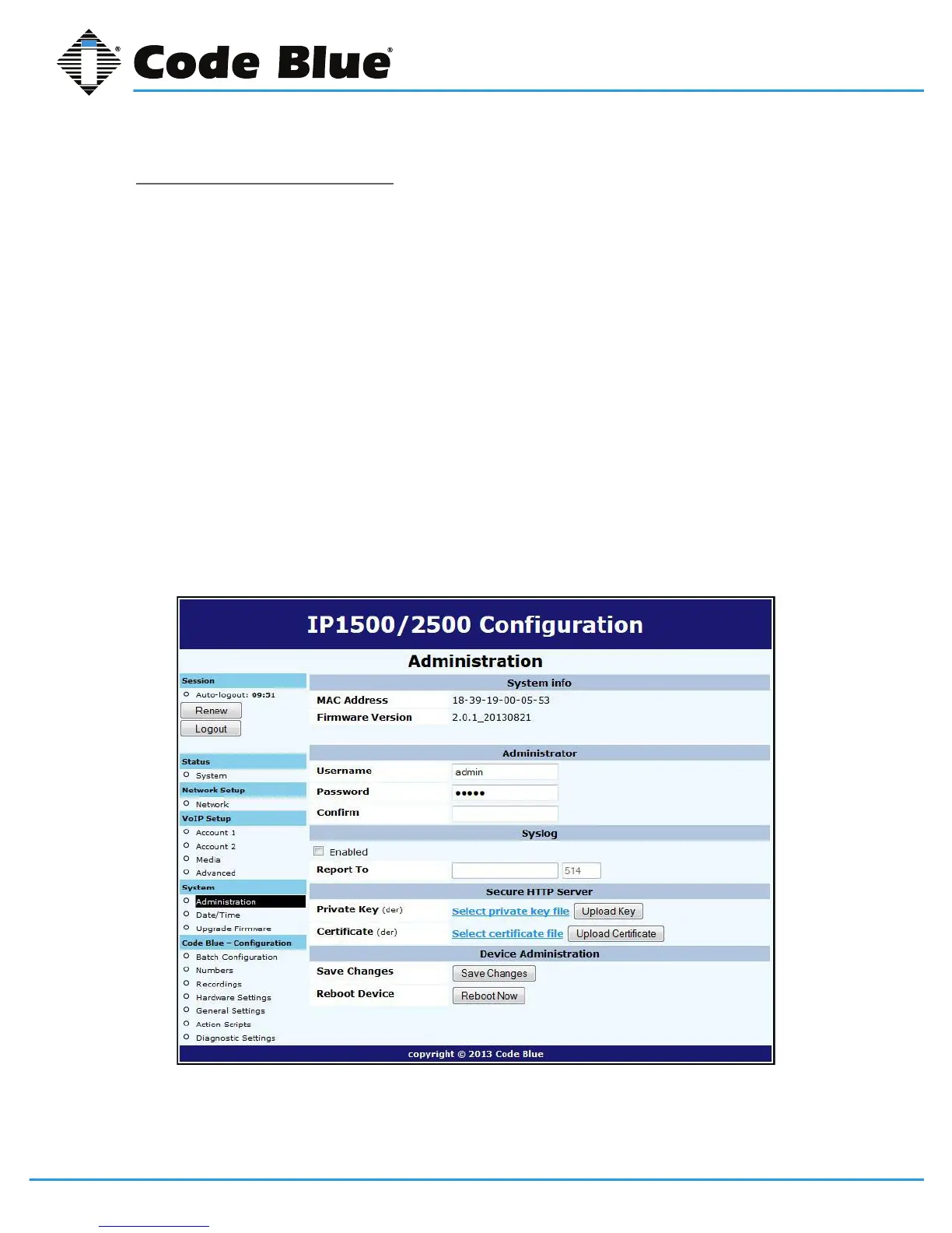 • AnewprivatekeyandcerticatecanbeuploadedtotheIP1500/2500’sSecure HTTP Server