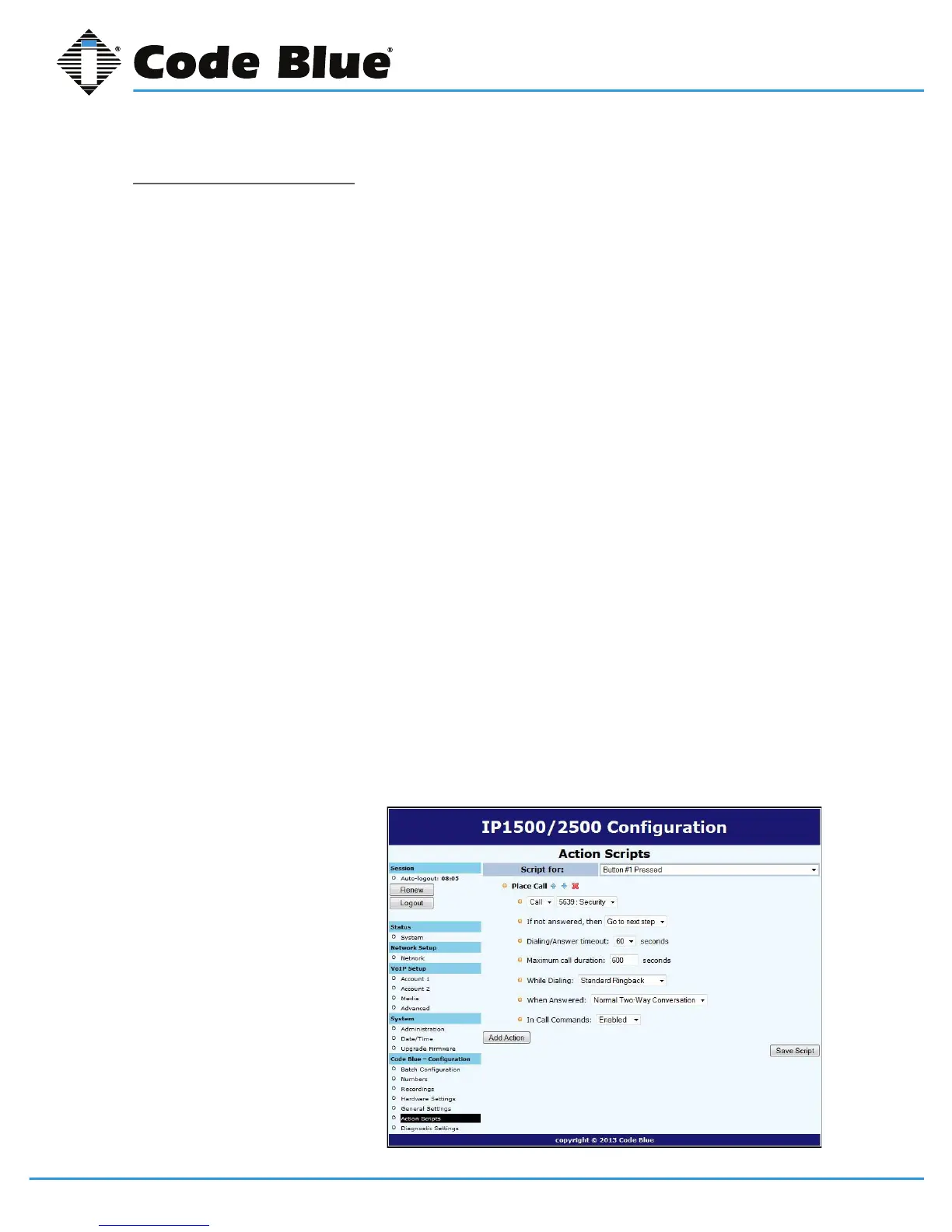 • ClickonAction ScriptsunderCode Blue(seefarleft-handcolumn)toprogramtheaction