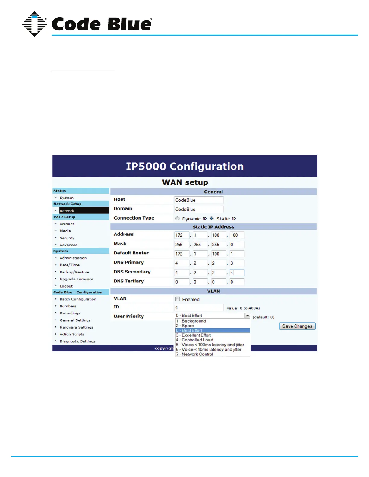TheIP5000speakerphoneiscapableofperformingIEEE802.1Qframetagginganduserpriority