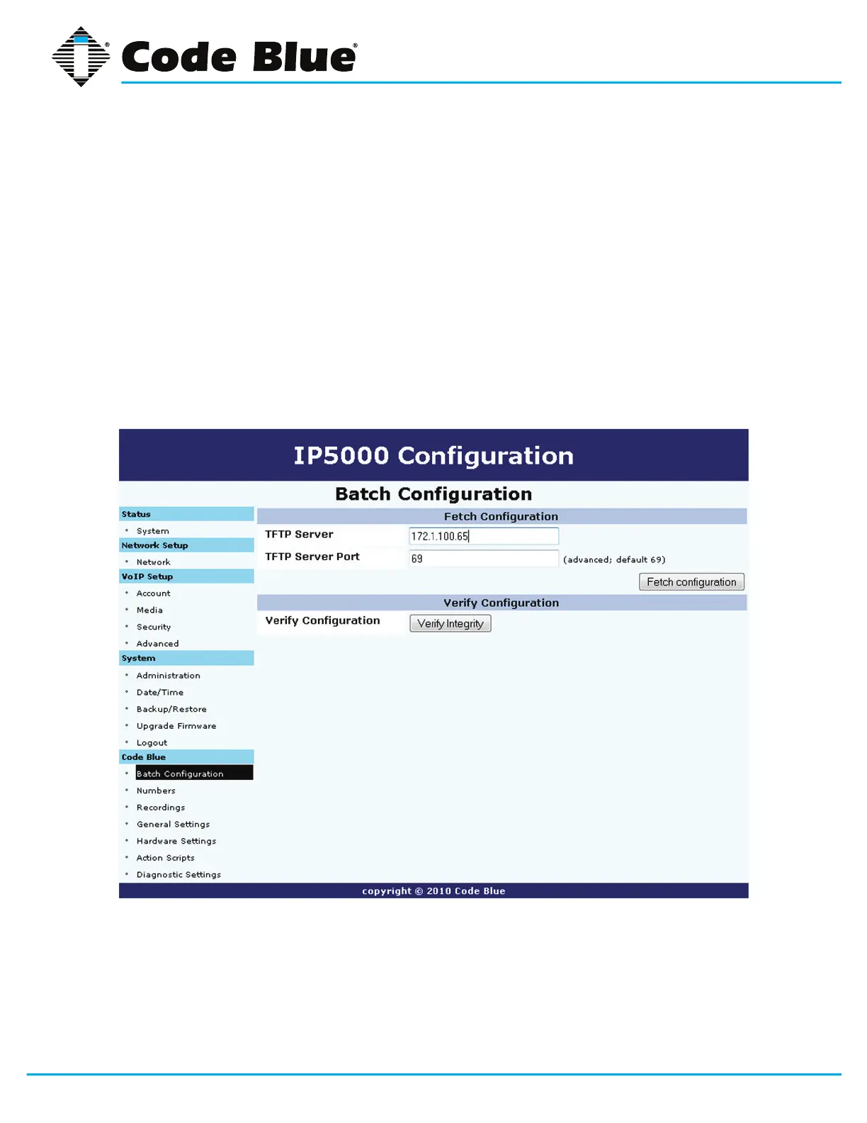 1. Click on Batch Conguration under Code Blue (seefarleft-handcolumn)