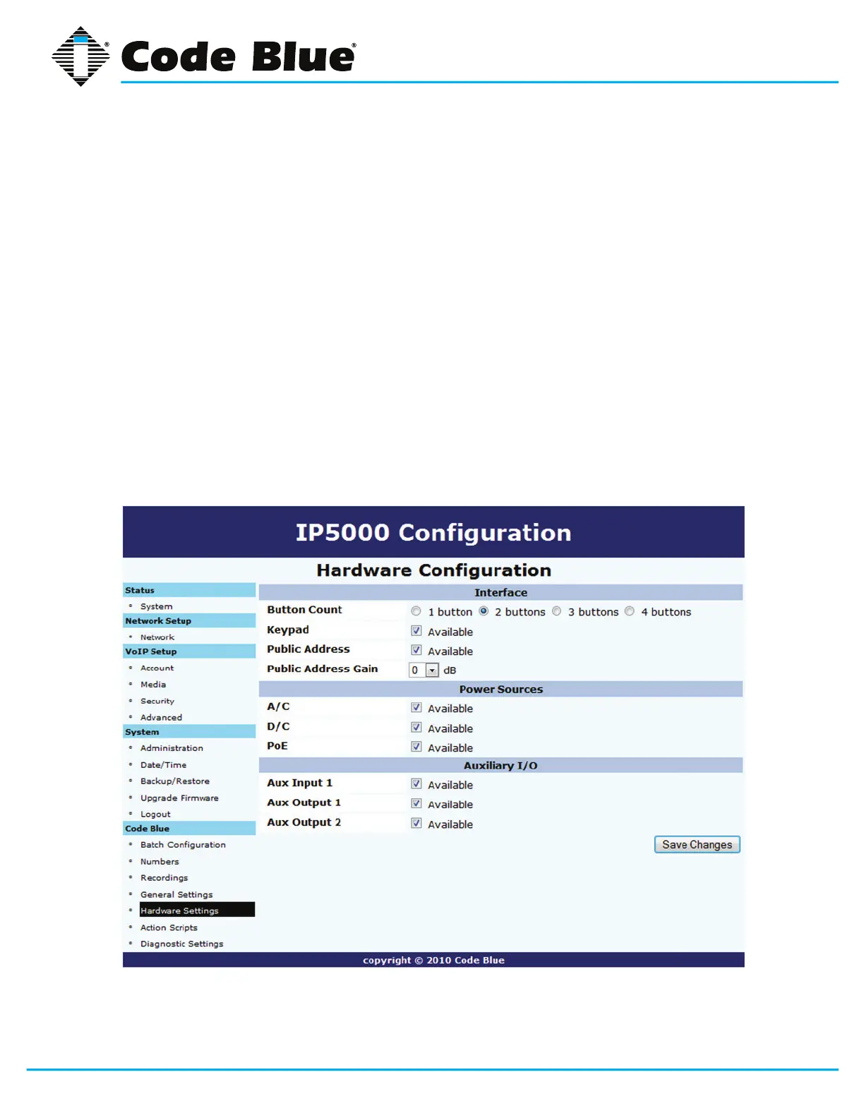 1. Selecting Hardware Settings under Code Blue(seefarleft-handcolumn).