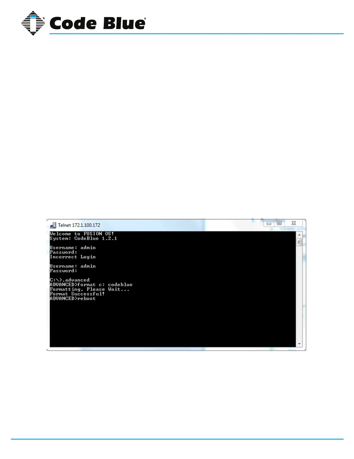 » Attheprompt,typeformatc:codeblue