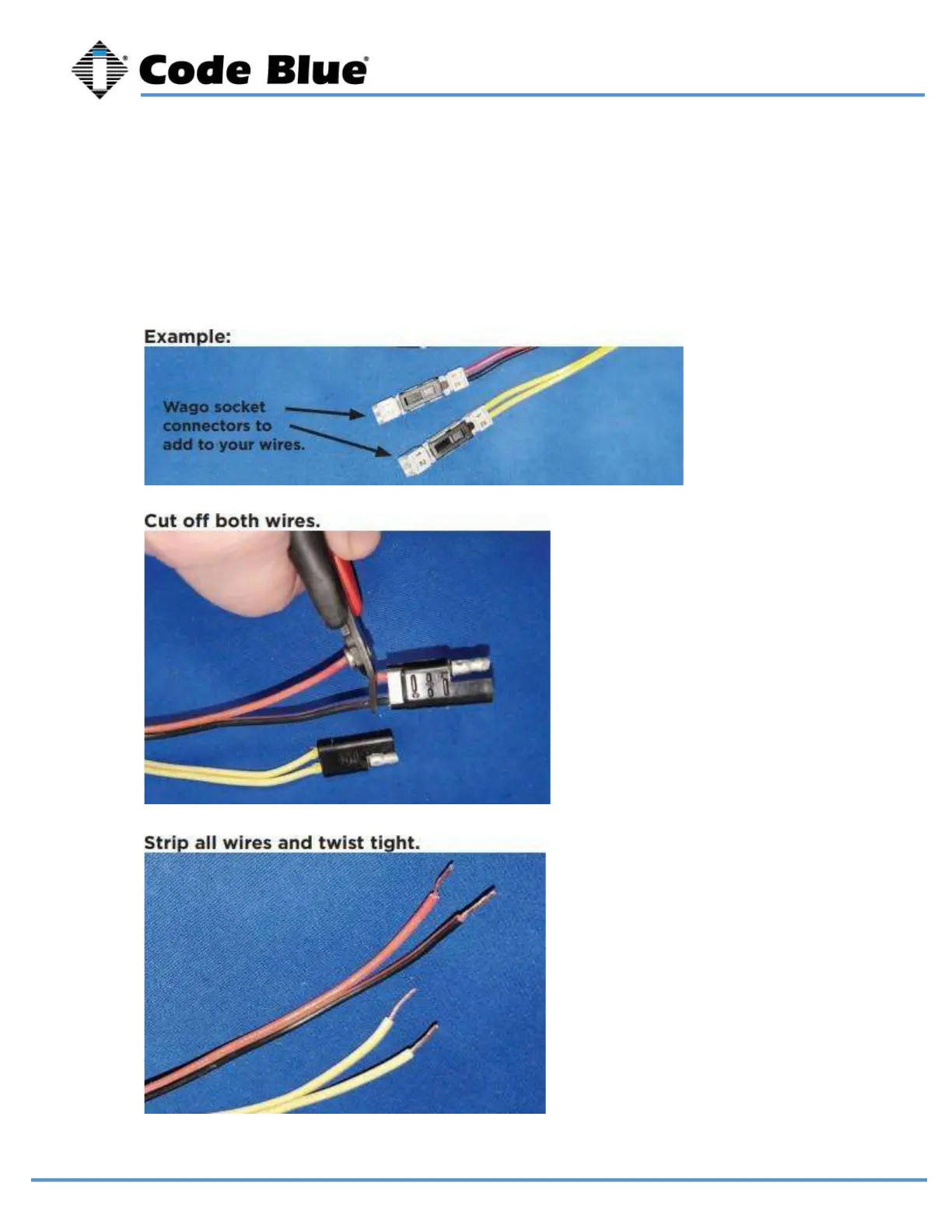 As of 2020, many Code Blue products come with Wago connectors. These connectors