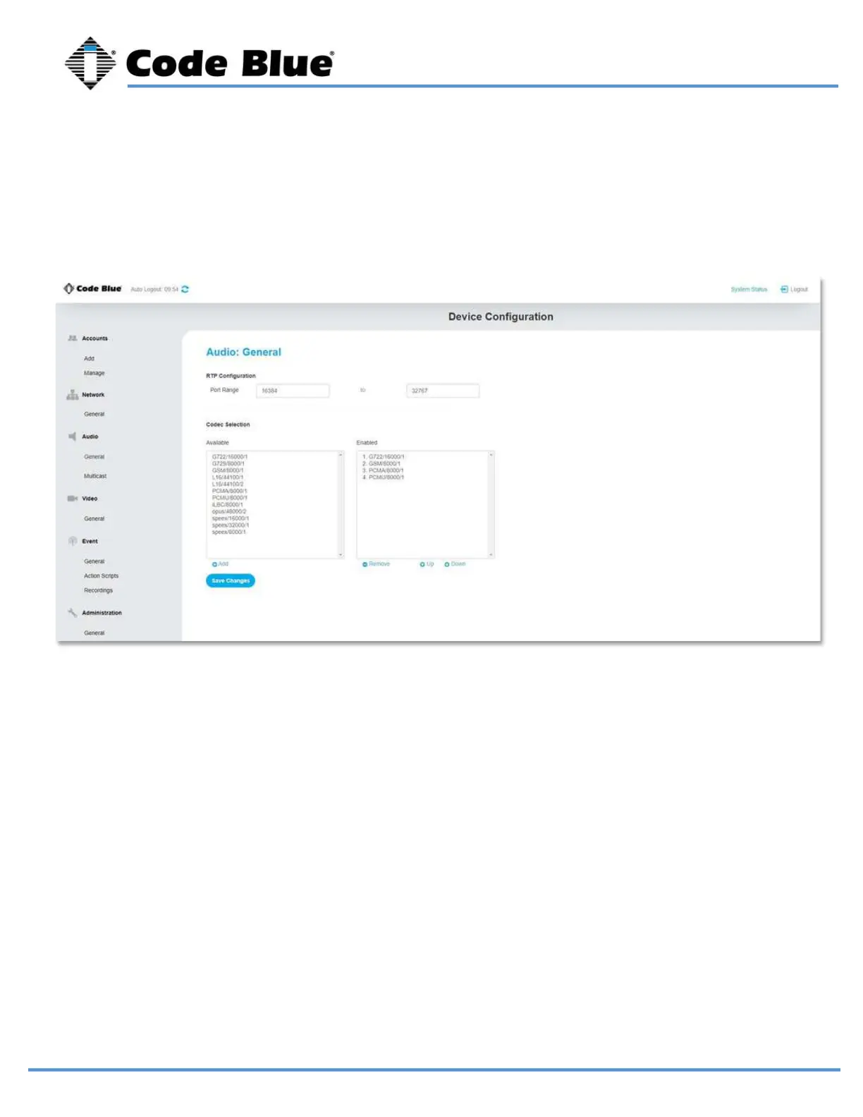 Default RTP Ports and Codecs are listed here. These can be adjusted based on the needs of