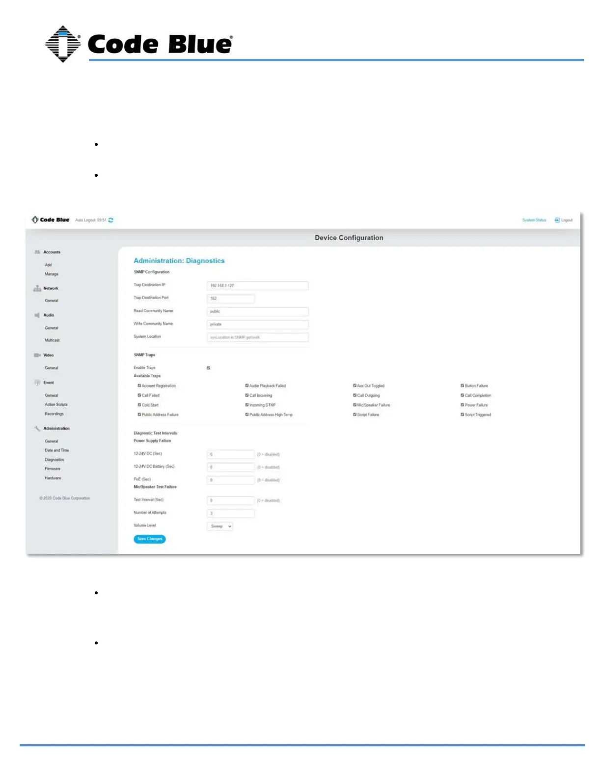 With SNMP Traps enabled, enter the SNMP server name, port number (162 by default) and