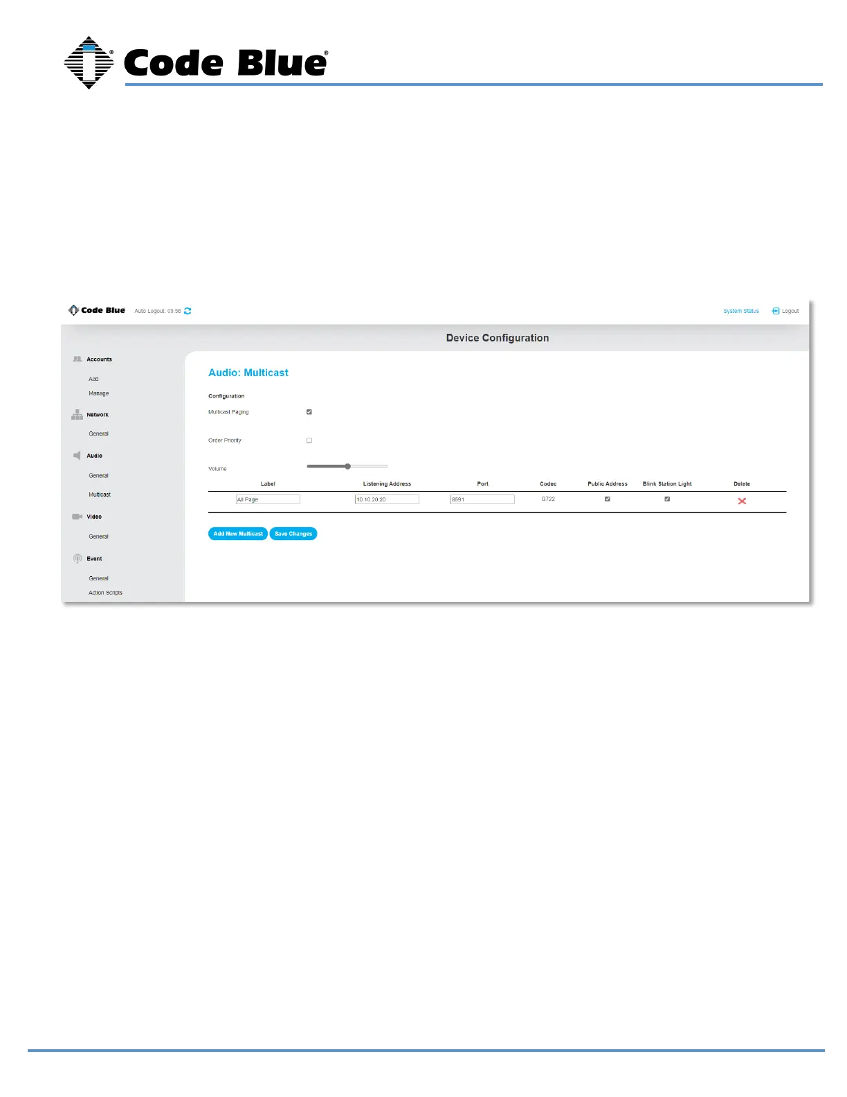 To add a new multicast configuration, enter a Label, the Listening IP address and Port.