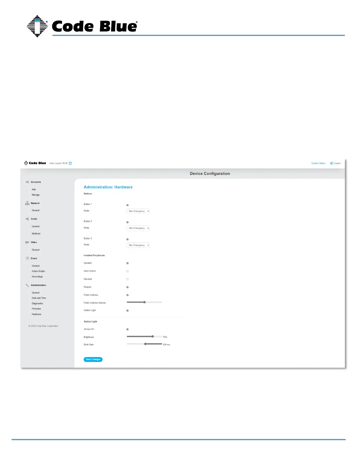 Hardware settings allow you to enable or disable the Station Light, adjust the brightness, and blink rate.