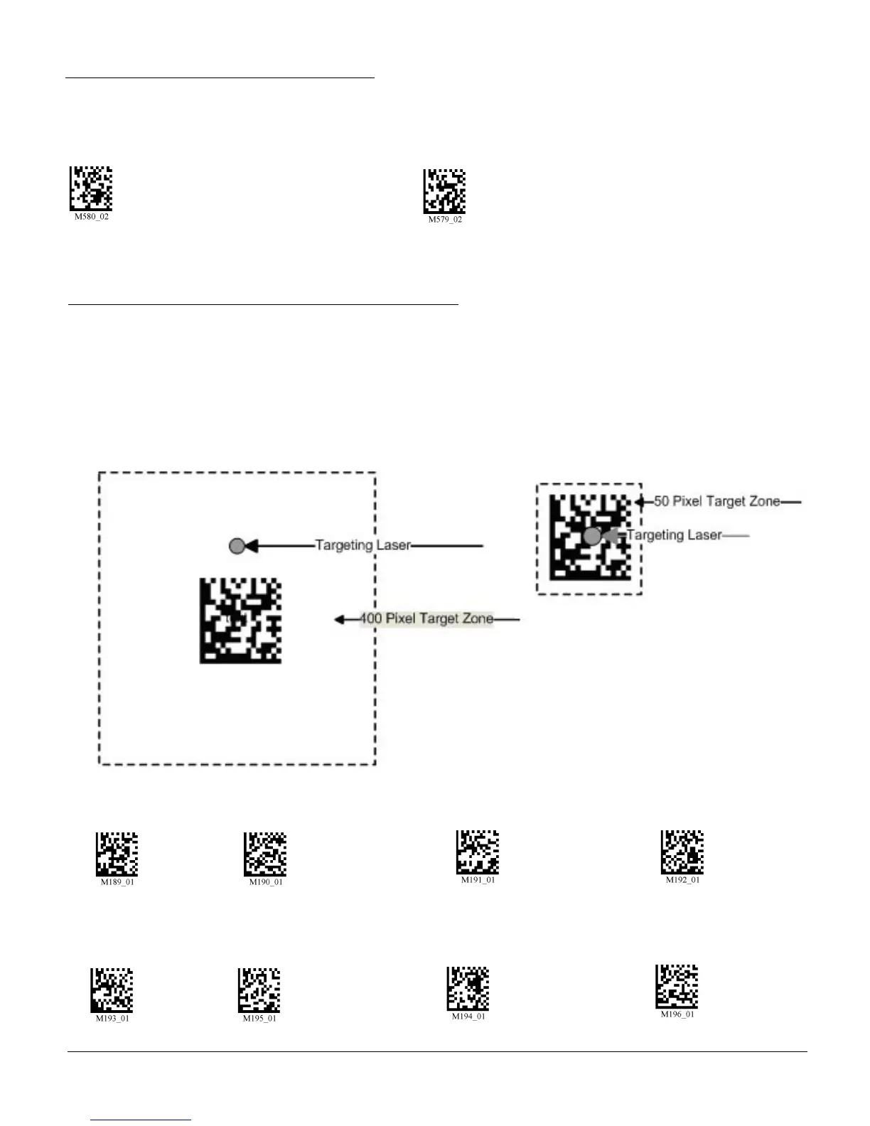 Targeting zone is the area around the outside of the code that is viewed by the imager. The values of each