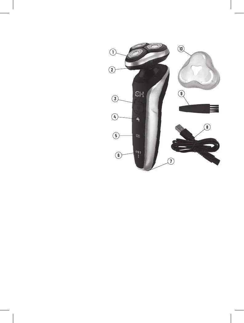• Nettoyage de la tête de rasage triple: ouvrez la tête de rasage et retirez tous les poils avec la brosse de nettoyage.
