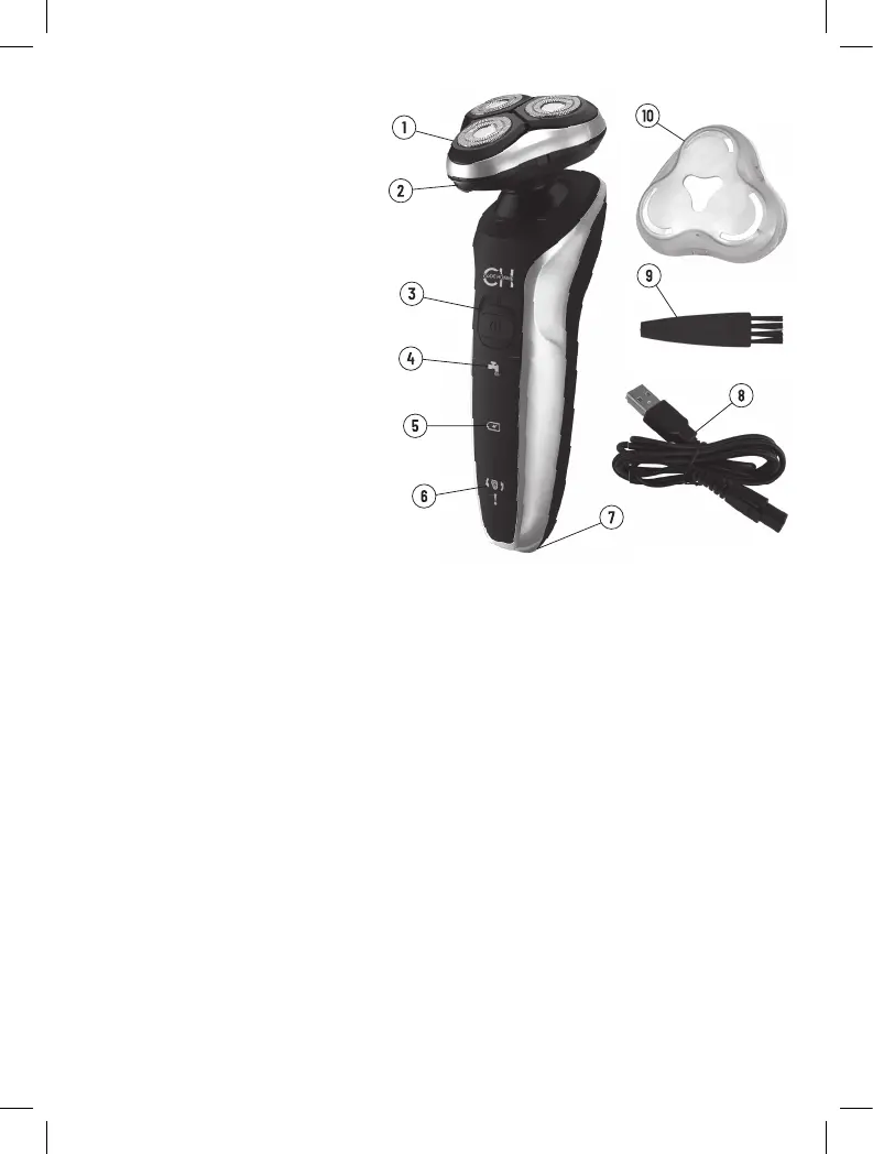• Akumulatorowa golarka zpotrójną głowicą, szczotka