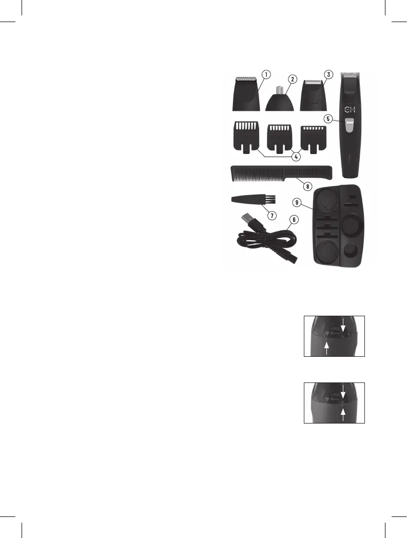 • 3 verschillende opzetstukken: trimmer, shaver en precisie trimmer