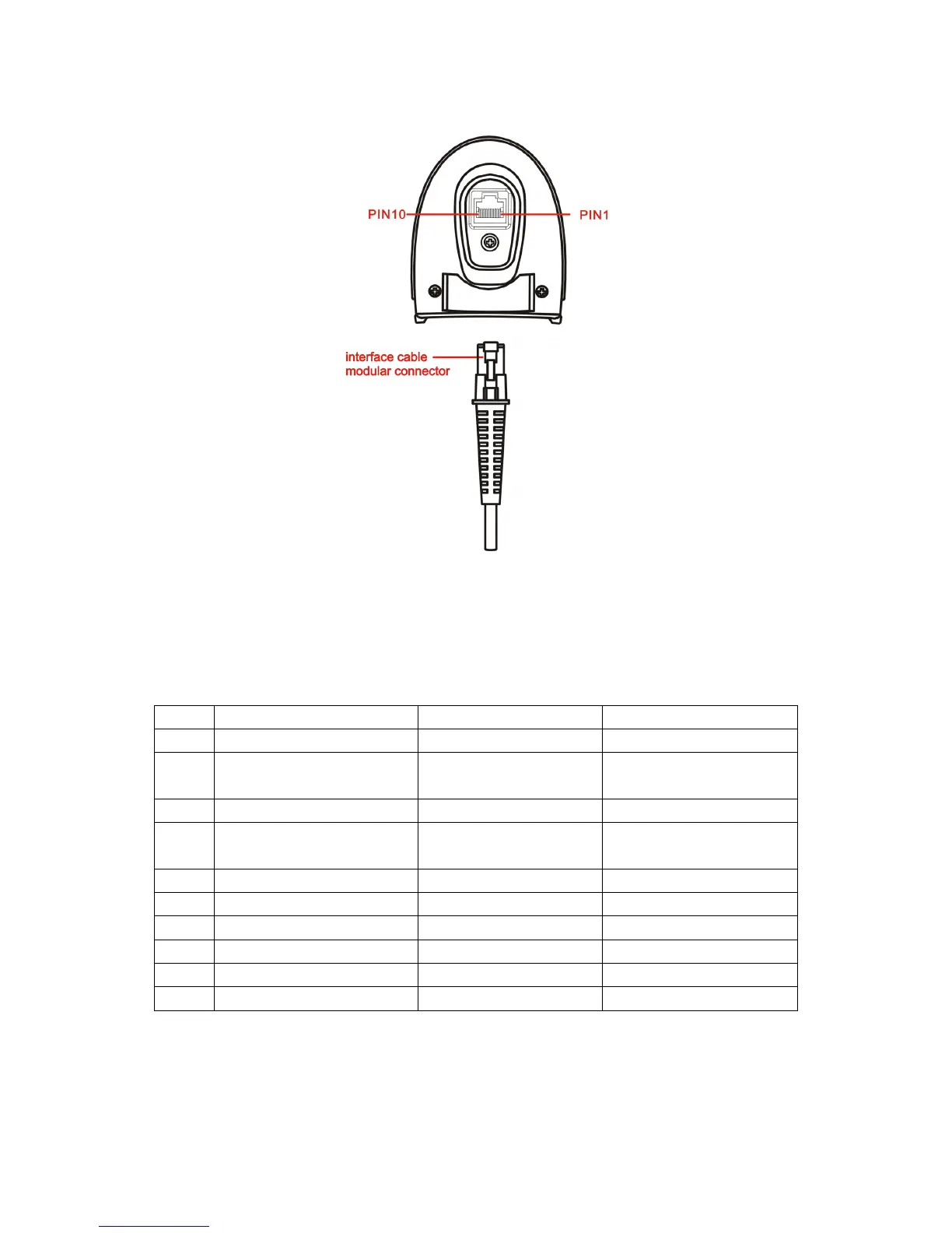 The pin-outs descriptions in Table 1 apply to the cable connector on the scanner and are for reference