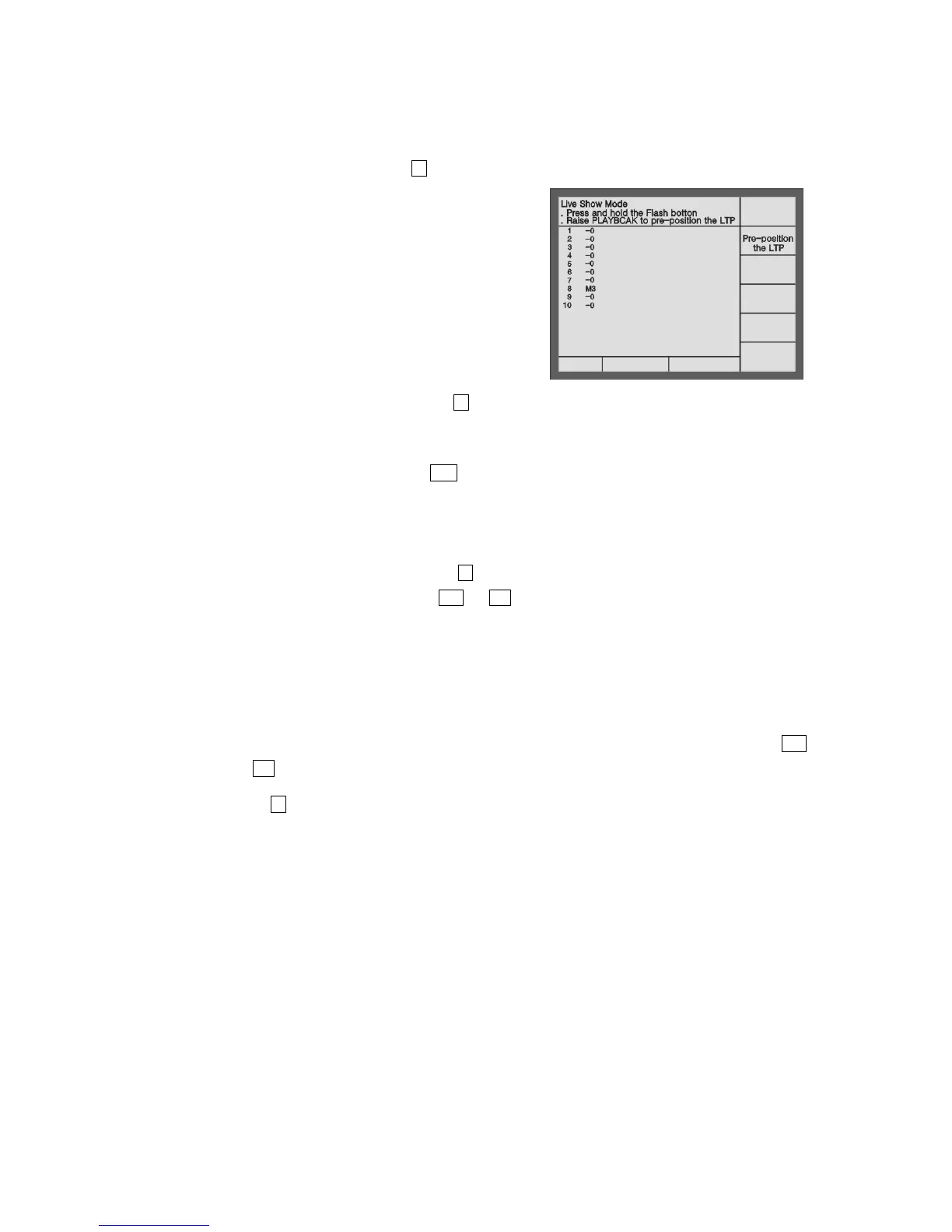 In the “Live Show Mode” menu, press S2 [Pre-position the LTP], LCD will display as follow: