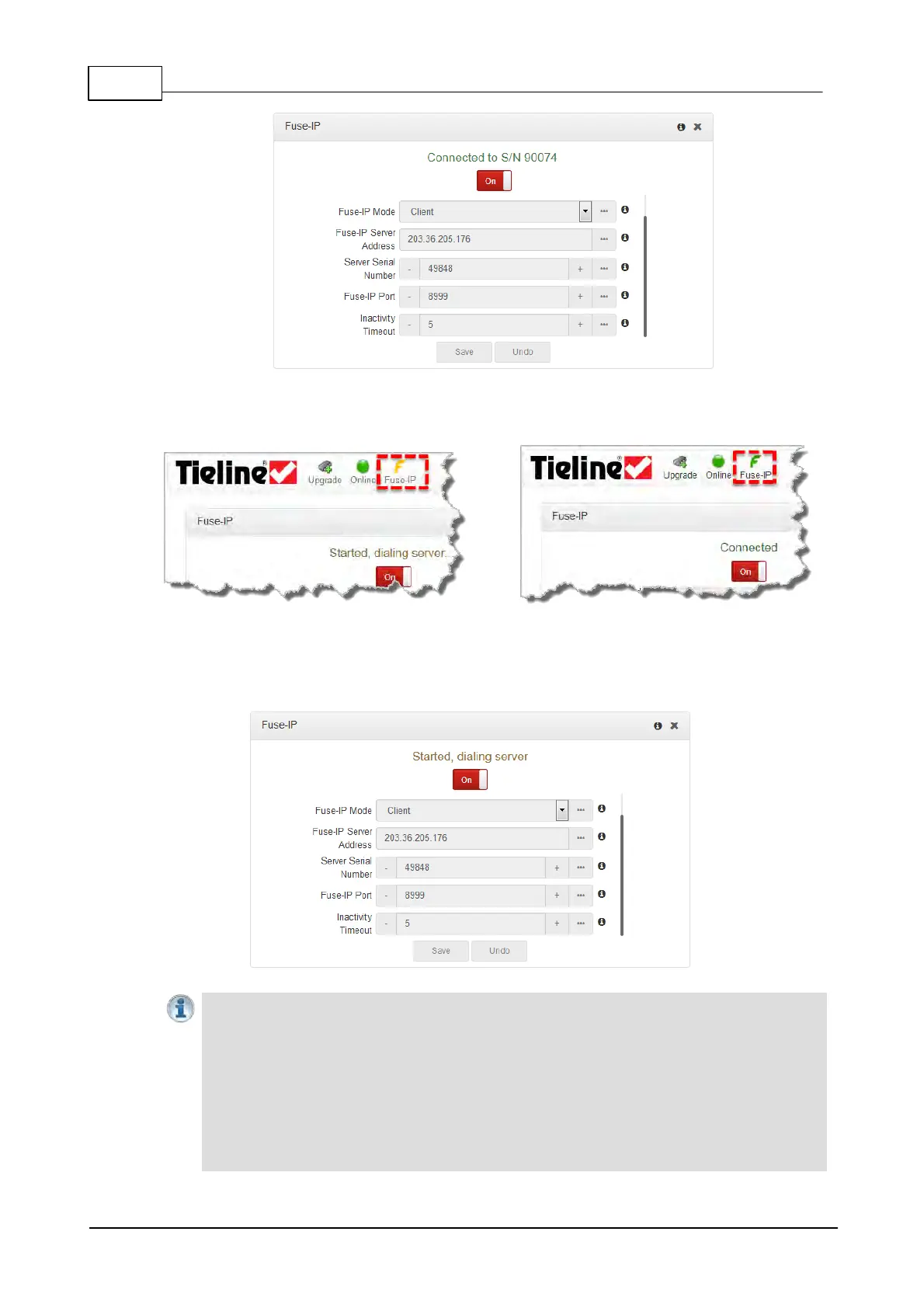 · Data is sent by the codec over the newly created 'tunnel' as soon as Fuse-IP is enabled,