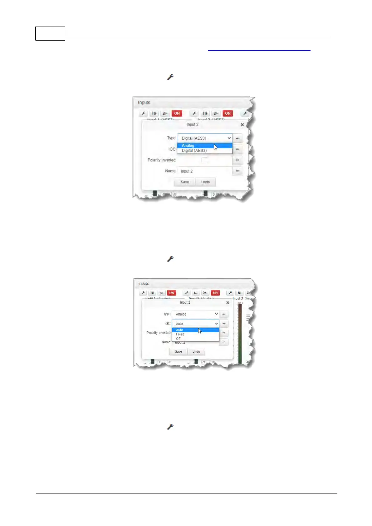 1. Click the Input Settings symbol on the input you want to adjust.