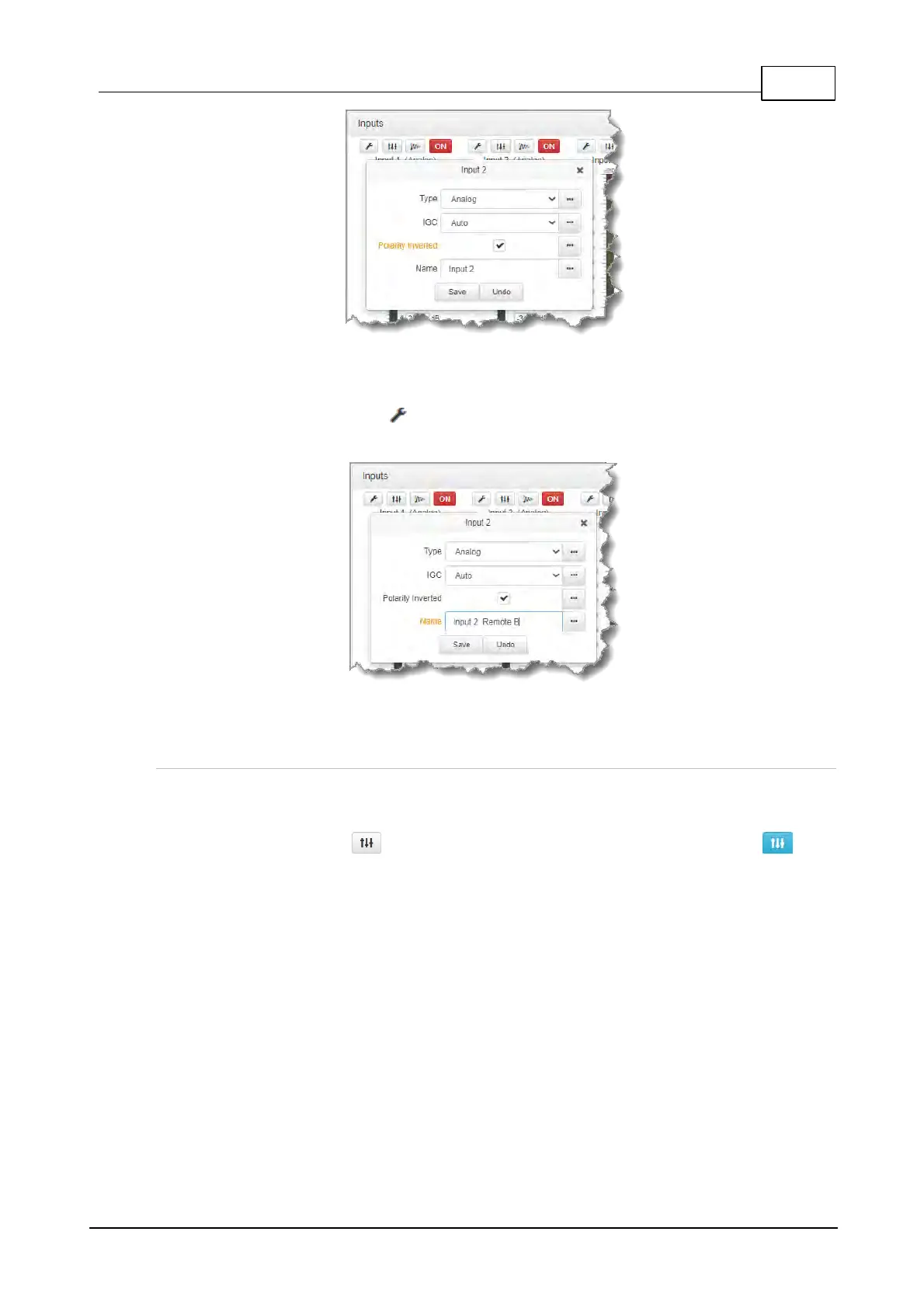 1. Select the Input Settings symbol on the input being renamed.