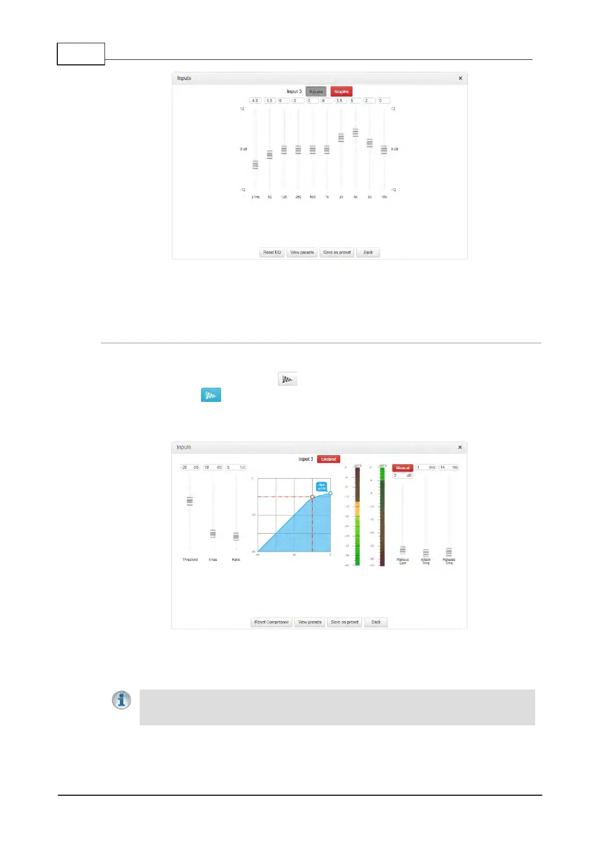 1. Click the Compressor button for an input in the Inputs panel. The Compressor