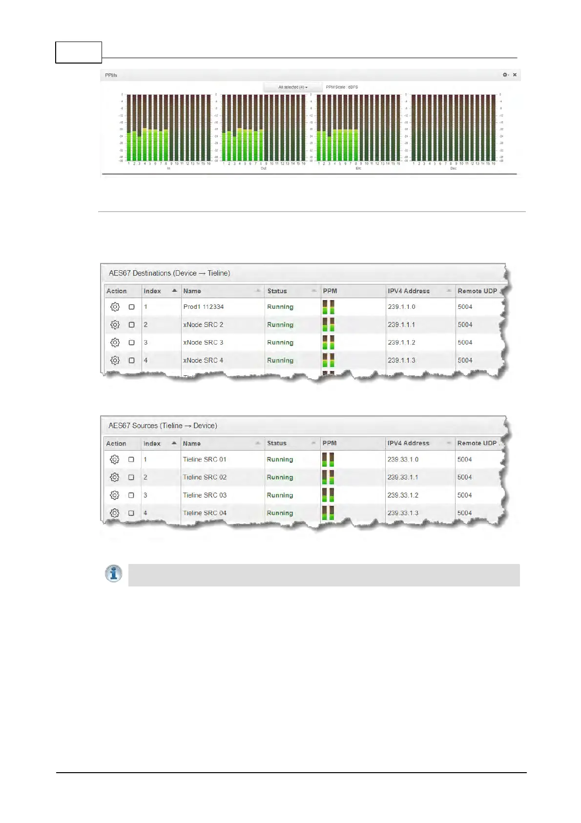 PPMs for AES67 streams are displayed in the AES67 Destinations panel and AES67 Sources