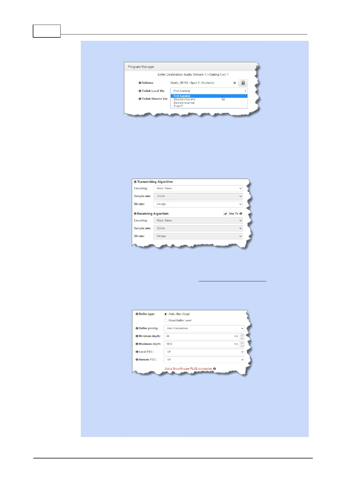 algorithm, jitter buffer and FEC settings and configure a failover connection or